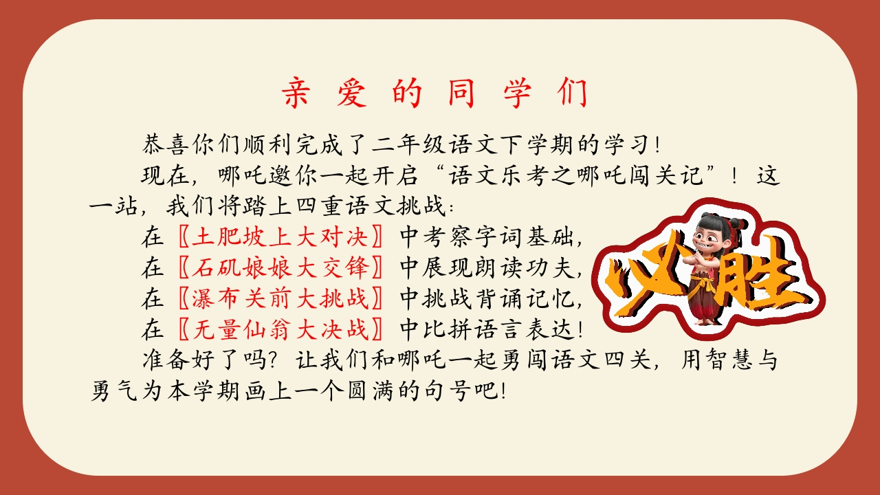 二年级语文下册“哪吒闯关”主题乐考PPTxiaozhi33164个月前更新关注私信15.40MB24页0297 以下为资料部分截图预览,下载后为超高清原文件。 第1页 / 共24页 第2页 / 共24页 试读已结束,还剩22页,您可下载完整版后进行离线阅读 加入VIP,享海量教务资料,无限制免费下载所有材料 © 版权声明文章版权归作者所有,未经允许请勿转载。THE END教务PPT综合资料 喜欢就支持一下吧点赞7 分享QQ空间微博QQ好友海报分享复制链接收藏