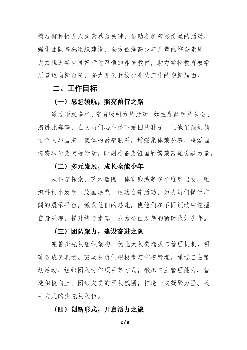 2025年春季学期学校少先队工作计划晨晨老师3个月前发布关注私信28.10KB8页03214 以下为资料部分截图预览,下载后为超高清原文件。 第1页 / 共8页 第2页 / 共8页 第3页 / 共8页 第4页 / 共8页 第5页 / 共8页 试读已结束,还剩3页,您可下载完整版后进行离线阅读 加入VIP,享海量教务资料,无限制免费下载所有材料 2025年春季学期学校少先队工作计划此内容为付费资源,请付费后查看¥9.99¥15.99VIP会员免费代理(享70%分佣)免费立即购买您当前未登录!建议登陆后购买,可保存购买订单付费资源© 版权声明文章版权归作者所有,未经允许请勿转载。THE END作业设计 喜欢就支持一下吧点赞14 分享QQ空间微博QQ好友海报分享复制链接收藏