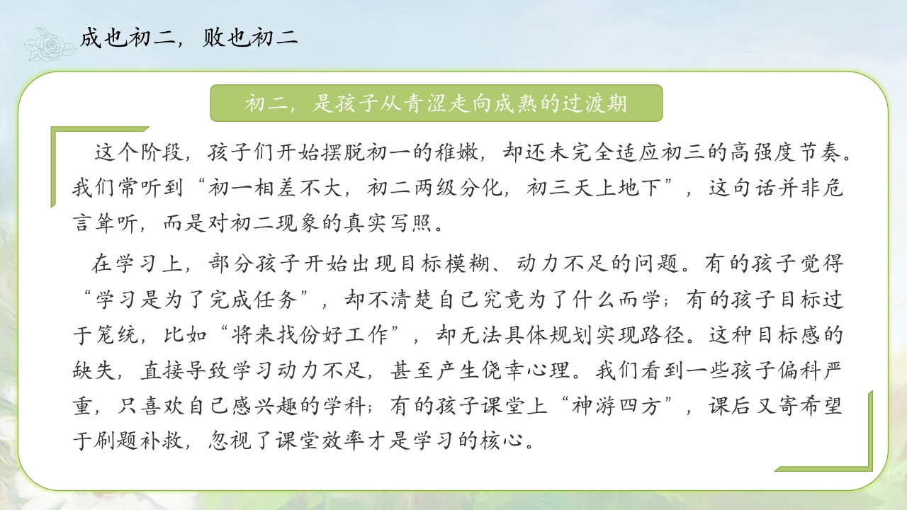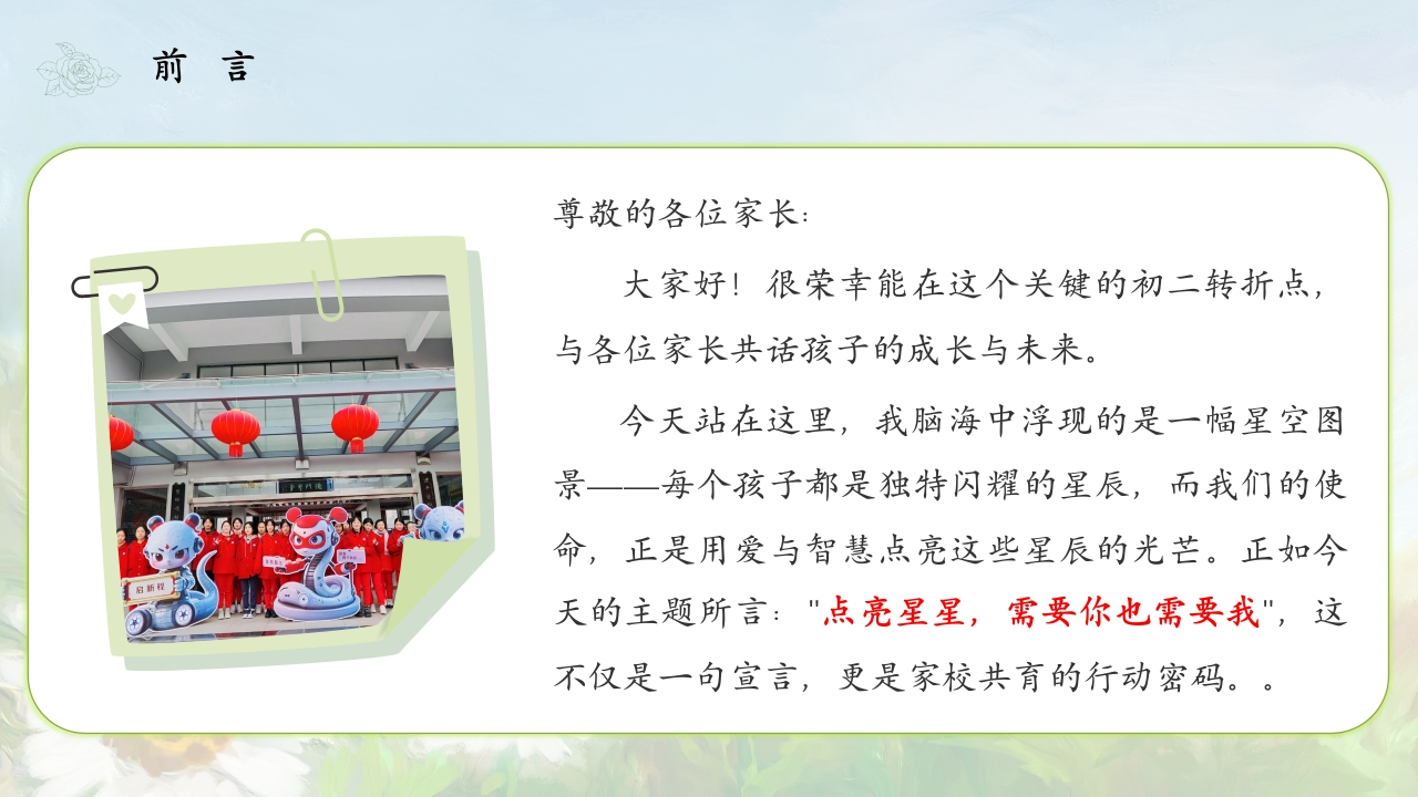 八年级期中家长会PPT课件晨晨老师3个月前更新关注私信38.49MB36页0229 以下为资料部分截图预览,下载后为超高清原文件。 第1页 / 共36页 第2页 / 共36页 第3页 / 共36页 第4页 / 共36页 第5页 / 共36页 试读已结束,还剩31页,您可下载完整版后进行离线阅读 加入VIP,享海量教务资料,无限制免费下载所有材料 © 版权声明文章版权归作者所有,未经允许请勿转载。THE END其他PPT教务PPT 喜欢就支持一下吧点赞9 分享QQ空间微博QQ好友海报分享复制链接收藏