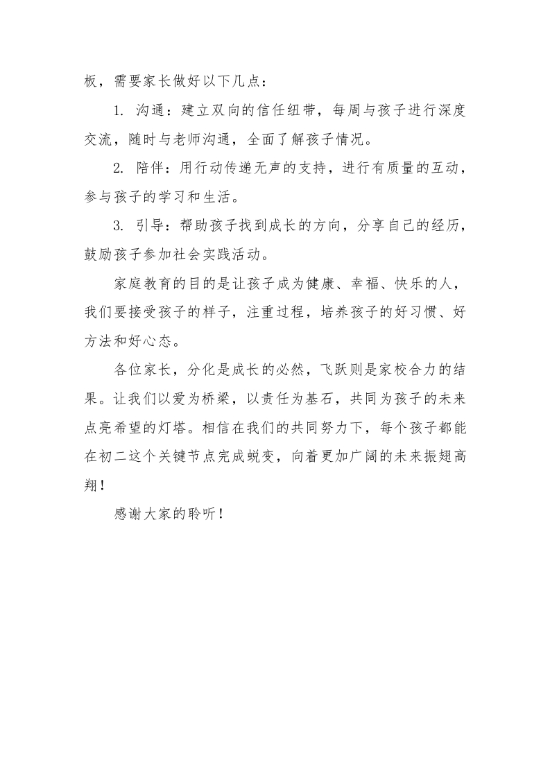八年级期中家长会讲稿晨晨老师6个月前发布关注私信14.06KB4页02511 以下为资料部分截图预览,下载后为超高清原文件。 第1页 / 共4页 第2页 / 共4页 第3页 / 共4页 第4页 / 共4页 已完成全部阅读,共4页 加入VIP,享海量教务资料,无限制免费下载所有材料 八年级期中家长会讲稿此内容为付费资源,请付费后查看¥9.99¥15.99VIP会员免费代理(享70%分佣)免费立即购买您当前未登录!建议登陆后购买,可保存购买订单付费资源© 版权声明文章版权归作者所有,未经允许请勿转载。THE END作业设计 喜欢就支持一下吧点赞11 分享QQ空间微博QQ好友海报分享复制链接收藏