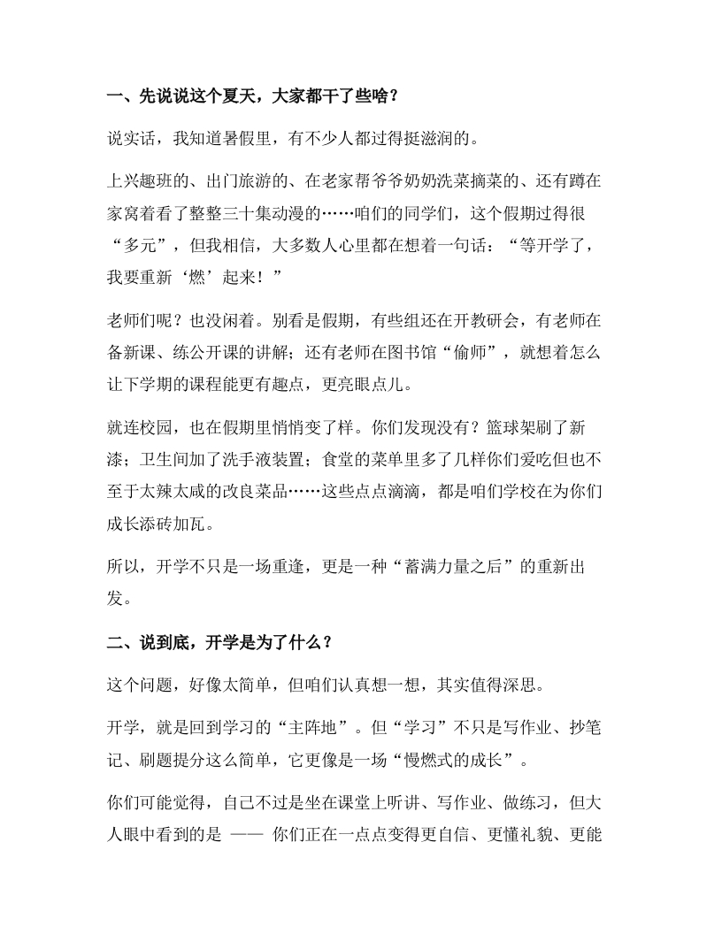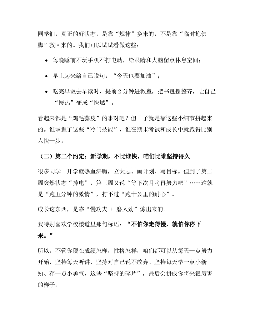2025年秋季开学典礼,校长致辞:启步金秋话成长,播梦育英向未来!晨晨老师6个月前发布关注私信22.04KB7页0507 以下为资料部分截图预览,下载后为超高清原文件。 第1页 / 共7页 第2页 / 共7页 第3页 / 共7页 第4页 / 共7页 第5页 / 共7页 试读已结束,还剩2页,您可下载完整版后进行离线阅读 加入VIP,享海量教务资料,无限制免费下载所有材料 2025年秋季开学典礼,校长致辞:启步金秋话成长,播梦育英向未来!此内容为付费资源,请付费后查看¥9.99¥15.99VIP会员免费代理(享70%分佣)免费立即购买您当前未登录!建议登陆后购买,可保存购买订单付费资源© 版权声明文章版权归作者所有,未经允许请勿转载。THE END发言讲话 喜欢就支持一下吧点赞7 分享QQ空间微博QQ好友海报分享复制链接收藏
