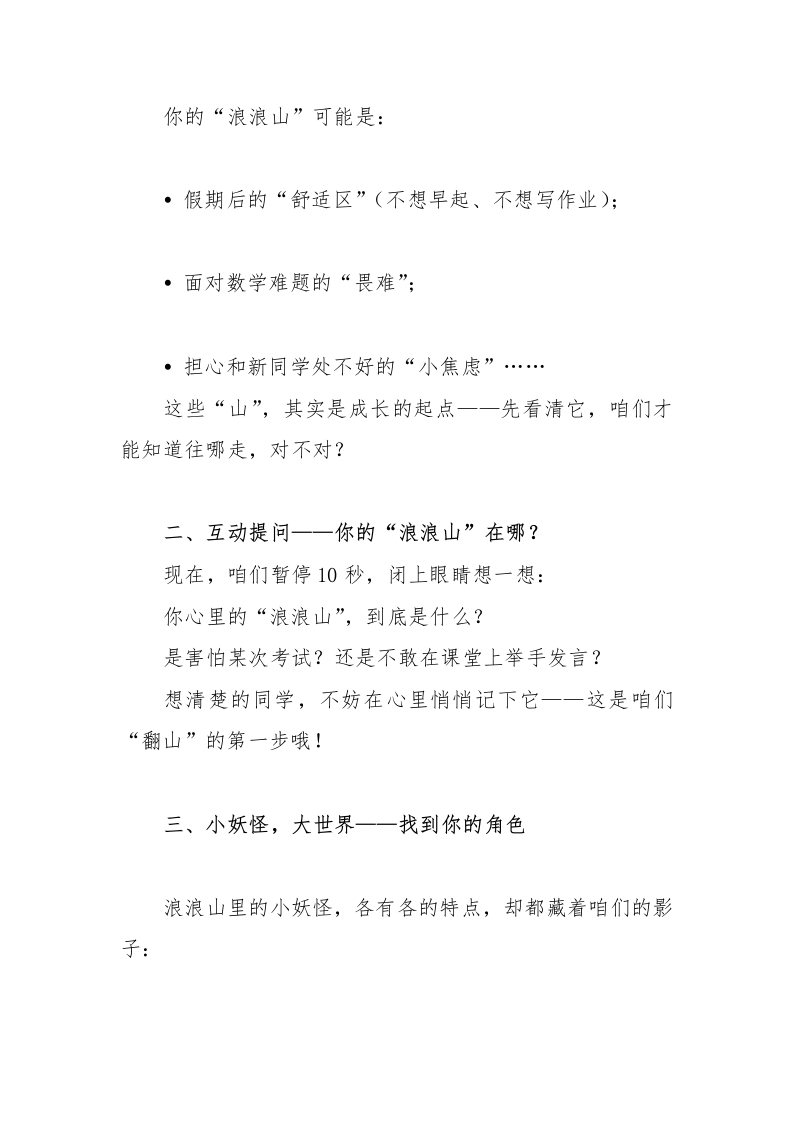 浪浪山开学第一课文字稿晨晨老师3个月前发布关注私信18.38KB10页03313 以下为资料部分截图预览,下载后为超高清原文件。 第1页 / 共10页 第2页 / 共10页 第3页 / 共10页 试读已结束,还剩7页,您可下载完整版后进行离线阅读 加入VIP,享海量教务资料,无限制免费下载所有材料 浪浪山开学第一课文字稿此内容为付费资源,请付费后查看¥9.99¥15.99VIP会员免费代理(享70%分佣)免费立即购买您当前未登录!建议登陆后购买,可保存购买订单付费资源© 版权声明文章版权归作者所有,未经允许请勿转载。THE END校长讲话 喜欢就支持一下吧点赞13 分享QQ空间微博QQ好友海报分享复制链接收藏
