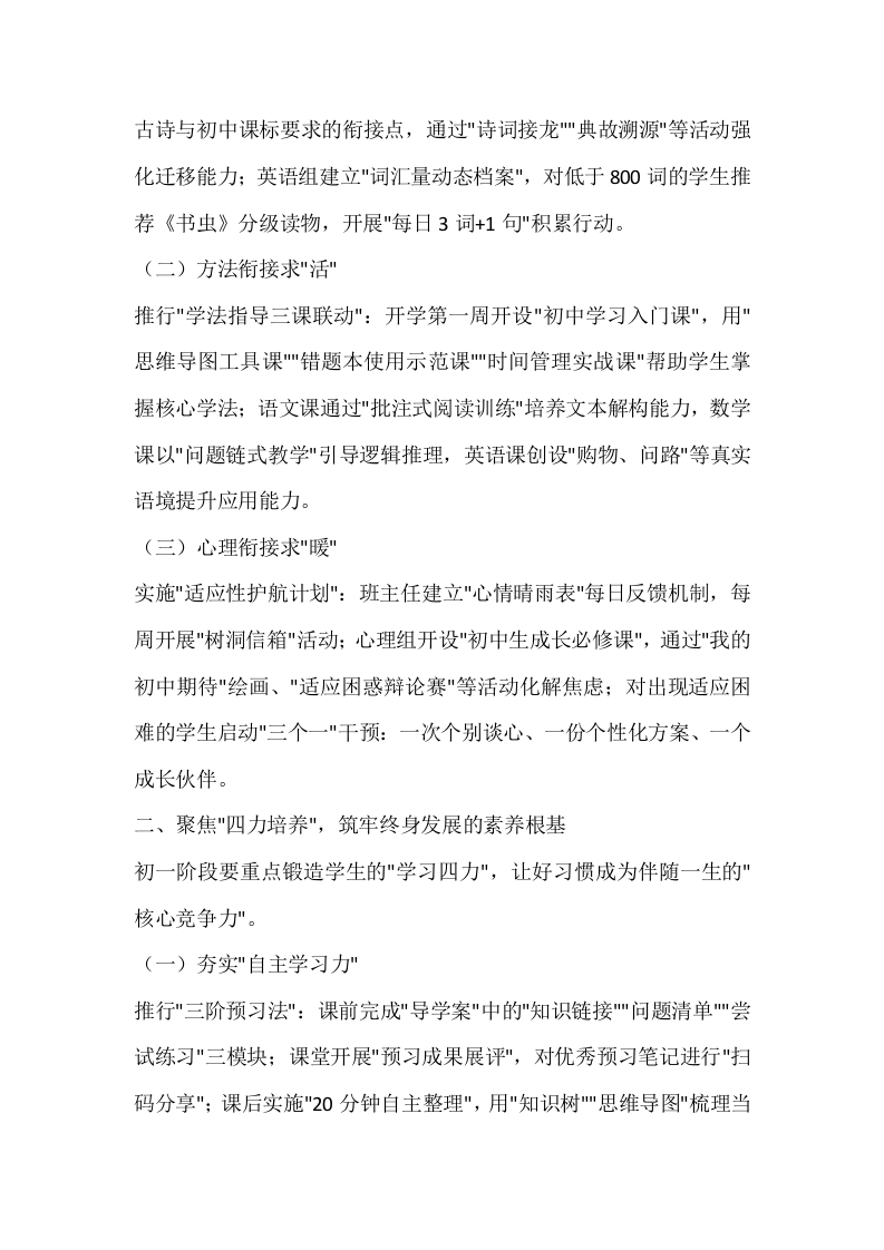 新学期初一教学教师会议上,副校长发言:三箭齐发抓起点,四维聚力育新晨晨老师2个月前发布关注私信15.87KB6页03114 以下为资料部分截图预览,下载后为超高清原文件。 第1页 / 共6页 第2页 / 共6页 第3页 / 共6页 试读已结束,还剩3页,您可下载完整版后进行离线阅读 加入VIP,享海量教务资料,无限制免费下载所有材料 新学期初一教学教师会议上,副校长发言:三箭齐发抓起点,四维聚力育新此内容为付费资源,请付费后查看¥9.99¥15.99VIP会员免费代理(享70%分佣)免费立即购买您当前未登录!建议登陆后购买,可保存购买订单付费资源© 版权声明文章版权归作者所有,未经允许请勿转载。THE END演讲致词 文本预览 新学期初一教学教师会议上,副校长发言:三箭齐发抓起点,四维聚力育新各位初一任课教师:大家上午好!今天,我们以"起步即冲刺"的奋进姿态召开专题会议,共同擘画初一教学蓝图。作为初中教育的"第一粒扣子",初一既是知识体系的"衔接站",更是学习品质的"塑造期",还是人生成长的"关键坡"。从教育规律看,小起点关乎大未来一一初一年级的教学质量,直接决定着学生三年成长的"天花板",影响着学校教育生态的"基本面"。在座各位既是学生成长的"引路人",更是学校质量的"奠基人",唯有以"时时放心不下"的责任感、"事事落实到位"的执行力,才能让每个孩子在起跑线上迈出坚实步伐。结合学校"三年一体化"育人规划,我今天重点从"三个聚焦、四项机制"展开部署,与大家携手打好这场奠基之战:一、聚焦"三维衔接",构建平稳过渡的教学体系衔接不是简单的知识重复,而是要打通"小学思维"向"初中思维"的转化通道,实现从"被动接受"到"主动探究"的能力跃升。(一)知识衔接求"准"各学科要绘制"小学初中知识对接图谱":数学组重点排查"分数运算简易方程"等6大前置知识点,开学首周开展"基础诊断测试",对薄弱学生实施"每日10分钟计算通关"计划:语文组梳理小学75首必背 查看更多 收起部分 喜欢就支持一下吧点赞14 分享QQ空间微博QQ好友海报分享复制链接收藏