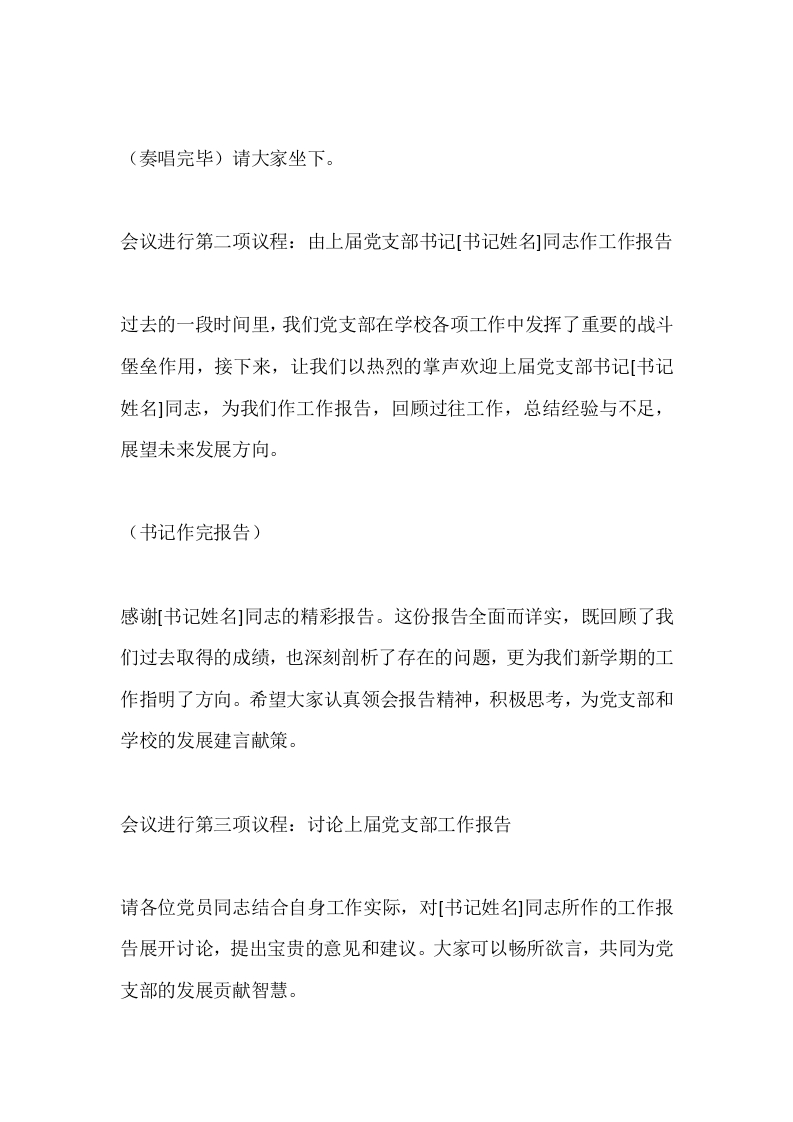 2025秋季学期开学前党员大会主持词晨晨老师2个月前发布关注私信14.43KB8页04612 以下为资料部分截图预览,下载后为超高清原文件。 第1页 / 共8页 第2页 / 共8页 试读已结束,还剩6页,您可下载完整版后进行离线阅读 加入VIP,享海量教务资料,无限制免费下载所有材料 2025秋季学期开学前党员大会主持词此内容为付费资源,请付费后查看¥9.99¥15.99VIP会员免费代理(享70%分佣)免费立即购买您当前未登录!建议登陆后购买,可保存购买订单付费资源© 版权声明文章版权归作者所有,未经允许请勿转载。THE END演讲致词 文本预览 2025秋季学期开学前党员大会主持词尊敬的各位党员同志:大家好!在这金秋送爽,丹桂飘香的美好时节,我们满怀热情与期待,迎来了2025秋季学期开学前的党员大会。本次大会,是在新学期即将开启,学校各项工作蓄势待发的关键节点召开的一次重要会议,意义深远。首先,我向大家介绍出席今天会议的领导和嘉宾,他们是[领导和嘉宾名单],让我们以热烈的掌声对他们的到来表示欢迎和感谢!本次大会应到正式党员)名,因病、因事请假]名,实到党员☒名,超过应到会有选举权党员人数的五分之四,符合规定人数,可以开会。现在,我宣布,2025秋季学期开学前党员大会正式开始。会议进行第一项议程:奏唱《国歌》请全体起立,奏唱《国歌》。 查看更多 收起部分 喜欢就支持一下吧点赞12 分享QQ空间微博QQ好友海报分享复制链接收藏