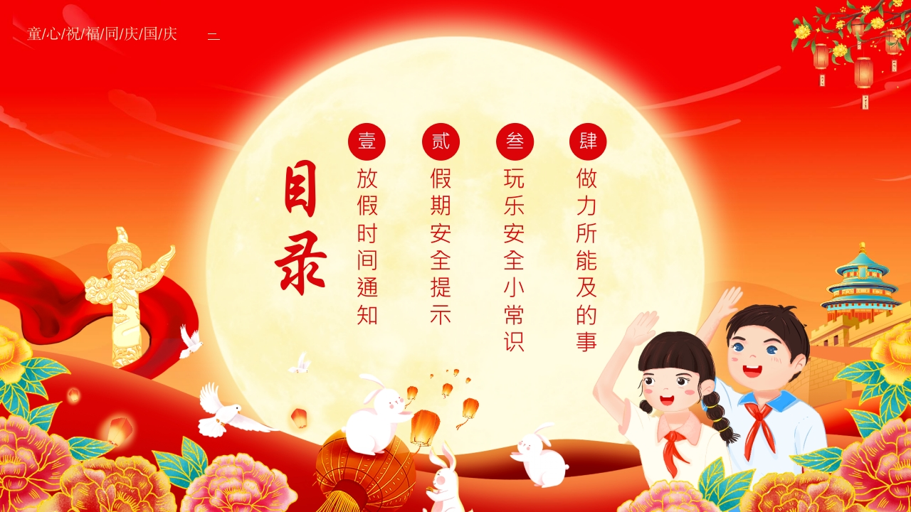 童/心祝/福/同/庆/国/庆欢度双节安全护航2025学校国庆中秋安全教育班会主讲人:X老师时间:2025