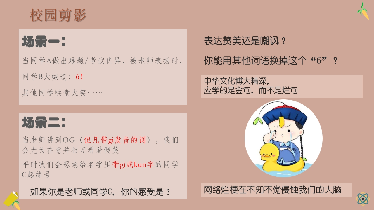 主题班会:不用烂梗,不做烂人【文明教育】晨晨老师38天前发布关注私信13.06MB7页02310 以下为资料部分截图预览,下载后为超高清原文件。 第1页 / 共7页 第2页 / 共7页 第3页 / 共7页 第4页 / 共7页 第5页 / 共7页 第6页 / 共7页 第7页 / 共7页 已完成全部阅读,共7页 加入VIP,享海量教务资料,无限制免费下载所有材料 主题班会:不用烂梗,不做烂人【文明教育】此内容为付费资源,请付费后查看¥9.9¥15.99VIP会员免费代理(享70%分佣)免费立即购买您当前未登录!建议登陆后购买,可保存购买订单付费资源© 版权声明文章版权归作者所有,未经允许请勿转载。THE END家长会 文本预览 三X三班微班会拒绝恶俗网络烂梗的毒害不用烂梗不做烂人 查看更多 收起部分 喜欢就支持一下吧点赞10 分享QQ空间微博QQ好友海报分享复制链接收藏