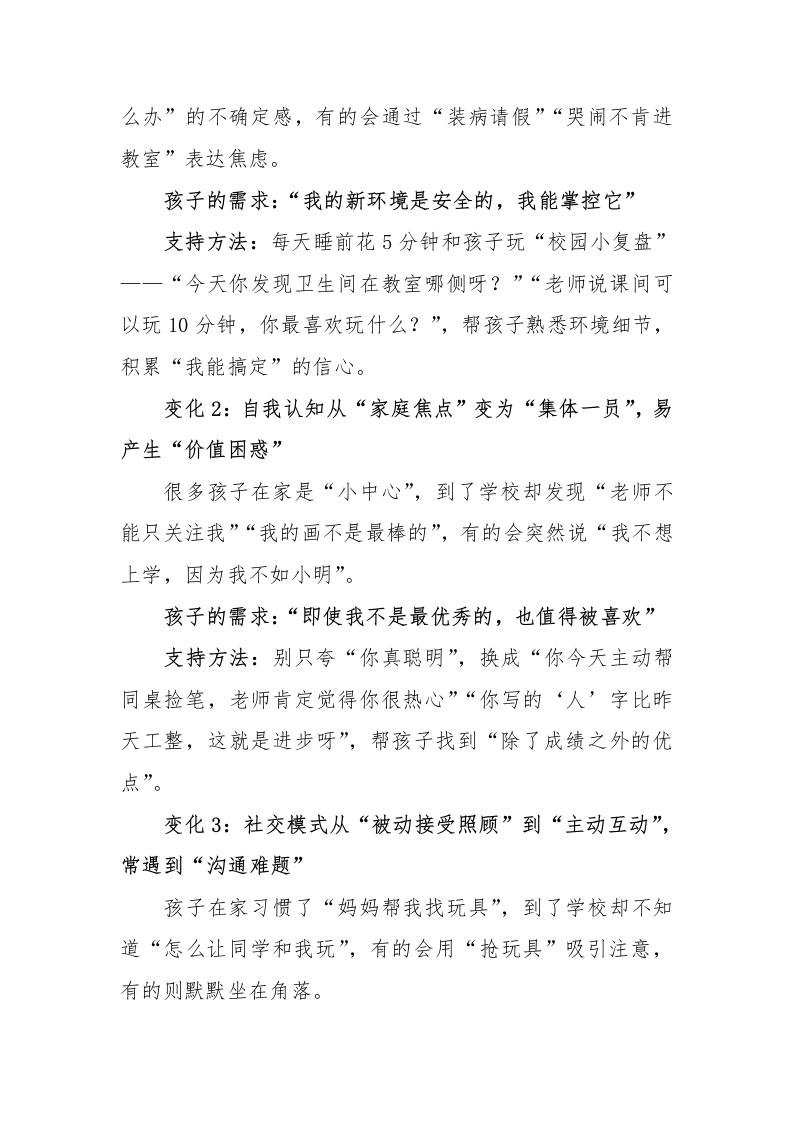 【一年级】【秋季上】【期中】家长会:站稳成长第一阶晨晨老师29天前发布关注私信0.29MB7页03710 以下为资料部分截图预览,下载后为超高清原文件。 第1页 / 共7页 第2页 / 共7页 试读已结束,还剩5页,您可下载完整版后进行离线阅读 加入VIP,享海量教务资料,无限制免费下载所有材料 【一年级】【秋季上】【期中】家长会:站稳成长第一阶此内容为付费资源,请付费后查看¥9.9¥15.9VIP会员免费代理(享70%分佣)免费立即购买您当前未登录!建议登陆后购买,可保存购买订单付费资源© 版权声明文章版权归作者所有,未经允许请勿转载。THE END班级管理 文本预览 站稳成收第一阶2025年秋季一年级家长会讲稿尊敬的各位家长:大家好!今天是我们近半学期来的首次正式相聚。当孩子们背上书包踏入校园时,他们迈出的不仅是入学第一步,更是人生从“家庭中心”走向“社会集体”的关键跨越。此刻坐在这里的每一位家长,或许都藏着同样的牵挂:我的孩子适应了吗?他在学校开心吗?今天,我们不聊分数排名,聚焦“一年级转折点”的四个核心真相。一、您是否读懂孩子的“适应密码”一比成绩更重要的是心理扎根半个学期来,我们见证了太多动人的成长:有从入园哭半小时到主动当“领读员”的孩子,也有从不敢举手到勇敢分享的宝贝。但更需要关注的,是孩子们藏在行为背后的心理信号一一这两个月里,他们正经历着人生第一次“心理断乳”,每一个小情绪、小抗拒,都是在向我们传递需求。变化1:安全感来源从“父母”转向“环境”,容易陷入“不确定焦虑”刚入学时,孩子习惯了家里“随叫随到”的照顾,突然要面对“上课不能随便说话”“喝水要排队”“找不到妈妈怎 查看更多 收起部分 喜欢就支持一下吧点赞10 分享QQ空间微博QQ好友海报分享复制链接收藏