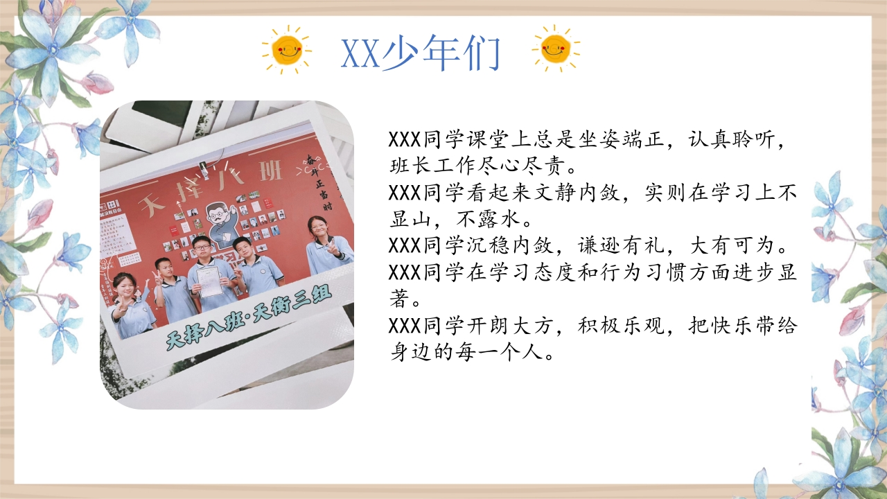 【初一】【秋季上】【期中】家长会:赏识激励,你我皆是黑马晨晨老师22天前发布关注私信25.89MB36页0458 以下为资料部分截图预览,下载后为超高清原文件。 第1页 / 共36页 第2页 / 共36页 第3页 / 共36页 第4页 / 共36页 第5页 / 共36页 第6页 / 共36页 第7页 / 共36页 第8页 / 共36页 第9页 / 共36页 第10页 / 共36页 试读已结束,还剩26页,您可下载完整版后进行离线阅读 加入VIP,享海量教务资料,无限制免费下载所有材料 【初一】【秋季上】【期中】家长会:赏识激励,你我皆是黑马此内容为付费资源,请付费后查看¥9.9¥15.9VIP会员免费代理(享70%分佣)免费立即购买您当前未登录!建议登陆后购买,可保存购买订单付费资源© 版权声明文章版权归作者所有,未经允许请勿转载。THE END其他PPT 文本预览 沟通/理解/关注孩子成长赏识激励,你我皆是黑马相信赞美的力量XX708班初一上学期期中家长会 查看更多 收起部分 喜欢就支持一下吧点赞8 分享QQ空间微博QQ好友海报分享复制链接收藏