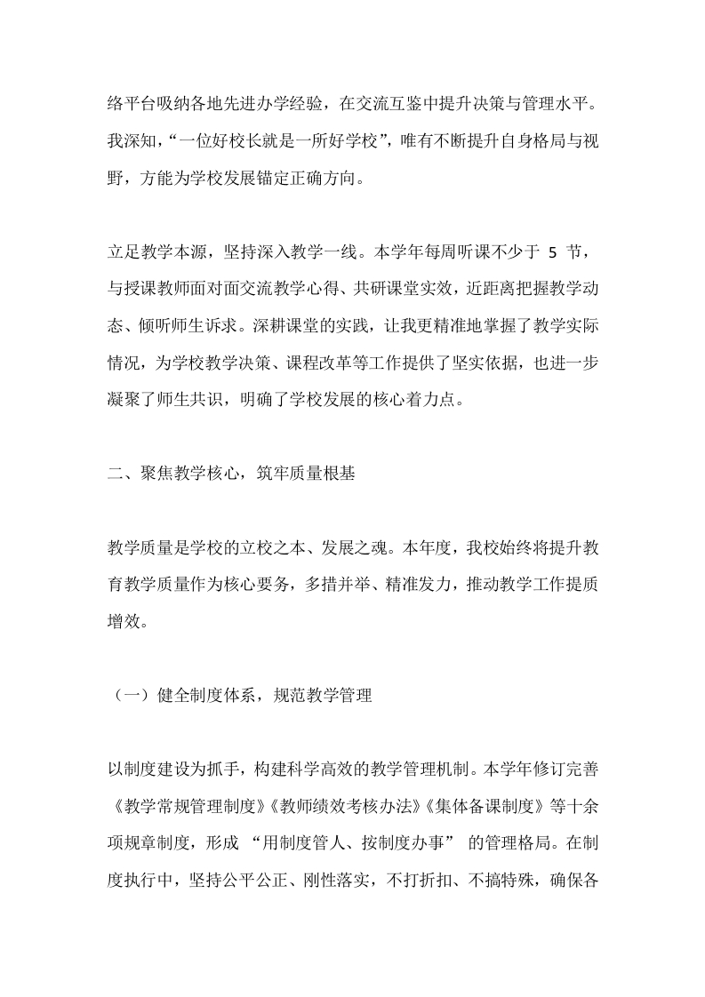 2025年度校长工作总结:守教育初心,担育人使命晨晨老师7天前发布关注私信17.87KB11页04112 以下为资料部分截图预览,下载后为超高清原文件。 第1页 / 共11页 第2页 / 共11页 试读已结束,还剩9页,您可下载完整版后进行离线阅读 加入VIP,享海量教务资料,无限制免费下载所有材料 2025年度校长工作总结:守教育初心,担育人使命此内容为付费资源,请付费后查看¥9.9¥15.9VIP会员免费代理(享70%分佣)免费立即购买您当前未登录!建议登陆后购买,可保存购买订单付费资源© 版权声明文章版权归作者所有,未经允许请勿转载。THE END计划总结 文本预览 2025年度校长工作总结:守教育初心,担育人使命时序更替,华章日新。转瞬一学年己在深耕细作中悄然落幕。回望履职之路,深感教育事业重若千钧,育人使命责无旁贷。在上级教育主管部门的科学引领下,在全校师生的同心耕耘下,我校各项工作稳步推进、成效显著,教育教学质量实现持续跃升。作为学校发展的领航者,我始终秉持“教育无小事,事事皆育人;校园无闲职,人人担其责”的办学理念,现将本年度工作情况汇报如下,恳请各位领导、同仁批评指正。一、深耕学习赋能,锤炼领航本领校长的办学视野与管理能力,直接关乎学校发展的高度与深度。一年来,我始终将学习作为履职之基、成事之要,持续筑牢思想根基与专业素养。主动参与各级各类校长研修班、教育管理专题培训,深入研读新时代教育方针政策与现代教育管理理论,系统学习前沿办学理念与实践经验。通过沉浸式学习,对新时代教育的初心使命有了更为深刻的体悟,办学思路不断拓宽,管理举措更趋科学。同时,坚持“三人行必有我师”,虚心向优秀同行请教,积极与校领导班子成员研讨,借助网 查看更多 收起部分 喜欢就支持一下吧点赞12 分享QQ空间微博QQ好友海报分享复制链接收藏
