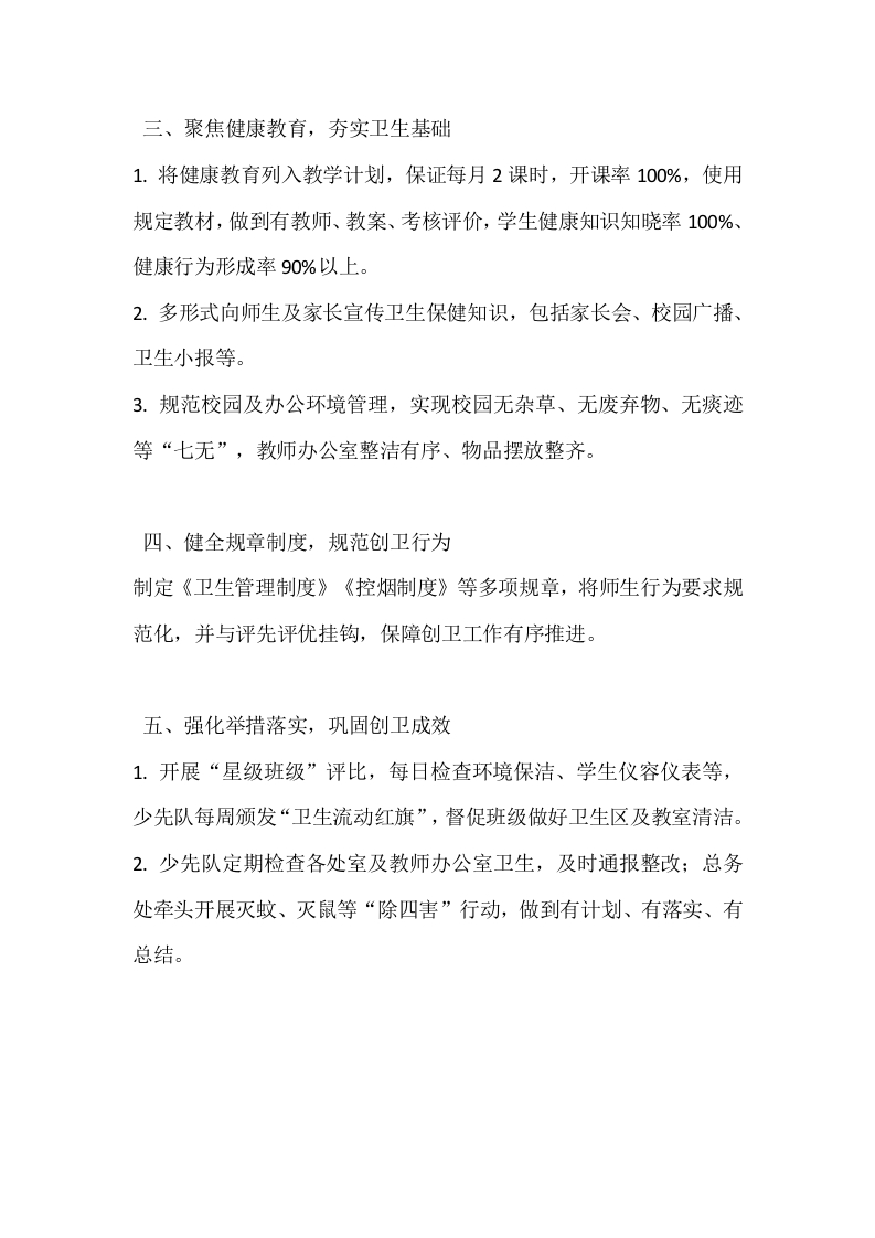 X学校创卫2025秋季第一学期工作总结我校在局、街道创卫办指导下,经全校师生共同努力,创卫工作成效显著,校园卫生、师生行为及办公环境均实现明显改善,核心工作总结如下:一、强化组织领导,压实工作责任1.成立以校长为组长、校级班子为副组长,各部门负责人及班主任为成员的创卫工作领导小组,下设办公室负责资料整理与卫生统筹。2.校领导亲自抓落实,明确分工(教导主任主管健康教育、副校长主管环境卫生),每周开展全校性卫生大检查,对问题当场督促整改。3.建立“目标计划一检查评比一总结表彰”闭环机制,将创卫责任落实到每位教职员工。二、加大宣传力度,营造创卫氛围1.依托班会、国旗下讲话、校园广播站、宣传栏、班级板报等阵地,普及卫生常识,引导师生养成良好卫生习惯。2.定期举办防近视、青春期卫生、疾病防控、心理健康等专题知识讲座,深化创卫宣传实效。3.分发卫生健康宣传材料,组织师生参与爱国卫生、环境保护等法规宣传教育及义务劳动,相关知识知晓率达95%以上。