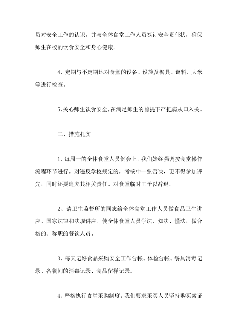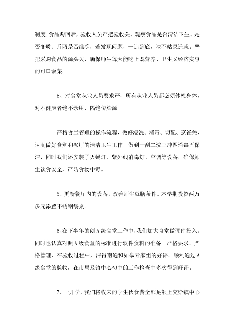 分管(食堂)学校工作总结有待今后工作中去改正、去充实,更加完善我们的食堂工作,使我校的食堂管理更上一个新台阶。晨晨老师前天发布关注私信16.50KB4页02915 以下为资料部分截图预览,下载后为超高清原文件。 第1页 / 共4页 第2页 / 共4页 第3页 / 共4页 试读已结束,还剩1页,您可下载完整版后进行离线阅读 加入VIP,享海量教务资料,无限制免费下载所有材料 分管(食堂)学校工作总结有待今后工作中去改正、去充实,更加完善我们的食堂工作,使我校的食堂管理更上一个新台阶。此内容为付费资源,请付费后查看¥9.9¥15.9VIP会员免费代理(享70%分佣)免费立即购买您当前未登录!建议登陆后购买,可保存购买订单付费资源© 版权声明文章版权归作者所有,未经允许请勿转载。THE END综合资料 文本预览 牢固树立全心全意为师生服务的意识。切实做好食堂工作的每一个环节,把学校食堂安全工作列为头等重要大事来抓,明确责任,层层落实。回顾一学期来,我校在上级主管部门、镇卫生所及学校的正确领导下,始终把学校食堂安全工作放在各项工作之首,重中之重。本学期,我们的做法具体如下:一、领导重视1、学校成立食堂安全管理领导小组,由校长亲自担任组长,副校长任副组长,成员由食堂负责人、会计及采买人和验收人担任。明确责任,分工到人,各负其责,校长负总责。定期召开食堂工作人员会议及采买人员、验收人员会议,研究部署学校食堂安全工作,制订安全工作计划,注重落实,狠抓过程管理,将安全隐患消失在萌芽之中。2、切实加强学校食堂安全管理。本学期定期对食堂工人、采买人员、验收人员进行安全培训,极大地了增强全体工作人员的安全知识和防范意识。3、加强对食堂工作人员的安全意识的教育,提高食堂工作人 查看更多 收起部分 喜欢就支持一下吧点赞15 分享QQ空间微博QQ好友海报分享复制链接收藏