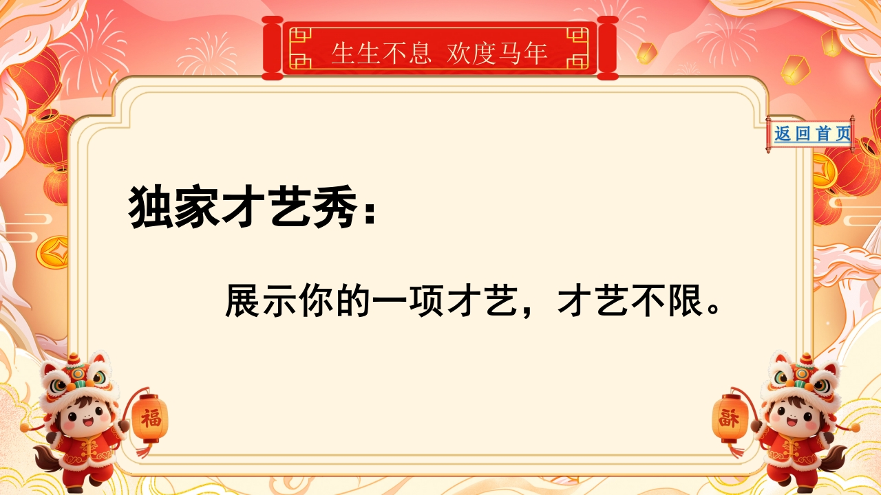 【通用】【元旦班会】2026元旦联欢会联欢游戏晨晨老师前天发布关注私信0.17GB30页0498 以下为资料部分截图预览,下载后为超高清原文件。 第1页 / 共30页 第2页 / 共30页 第3页 / 共30页 第4页 / 共30页 第5页 / 共30页 第6页 / 共30页 第7页 / 共30页 第8页 / 共30页 第9页 / 共30页 第10页 / 共30页 试读已结束,还剩20页,您可下载完整版后进行离线阅读 加入VIP,享海量教务资料,无限制免费下载所有材料 【通用】【元旦班会】2026元旦联欢会联欢游戏此内容为付费资源,请付费后查看¥9.9¥15.9VIP会员免费代理(享70%分佣)免费立即购买您当前未登录!建议登陆后购买,可保存购买订单付费资源© 版权声明文章版权归作者所有,未经允许请勿转载。THE END其他PPT 文本预览 然米20j6年元旦联欢晚会联欢游戏福 查看更多 收起部分 喜欢就支持一下吧点赞8 分享QQ空间微博QQ好友海报分享复制链接收藏