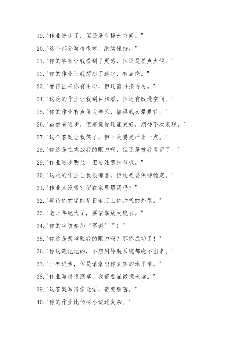 阴阳怪气批改作业篇(1)xiaozhi33164个月前更新关注私信0.15MB3页02612 以下为资料部分截图预览,下载后为超高清原文件。 第1页 / 共3页 第2页 / 共3页 试读已结束,还剩1页,您可下载完整版后进行离线阅读 加入VIP,享海量教务资料,无限制免费下载所有材料 © 版权声明文章版权归作者所有,未经允许请勿转载。THE END常用文档班主任库 喜欢就支持一下吧点赞12 分享QQ空间微博QQ好友海报分享复制链接收藏