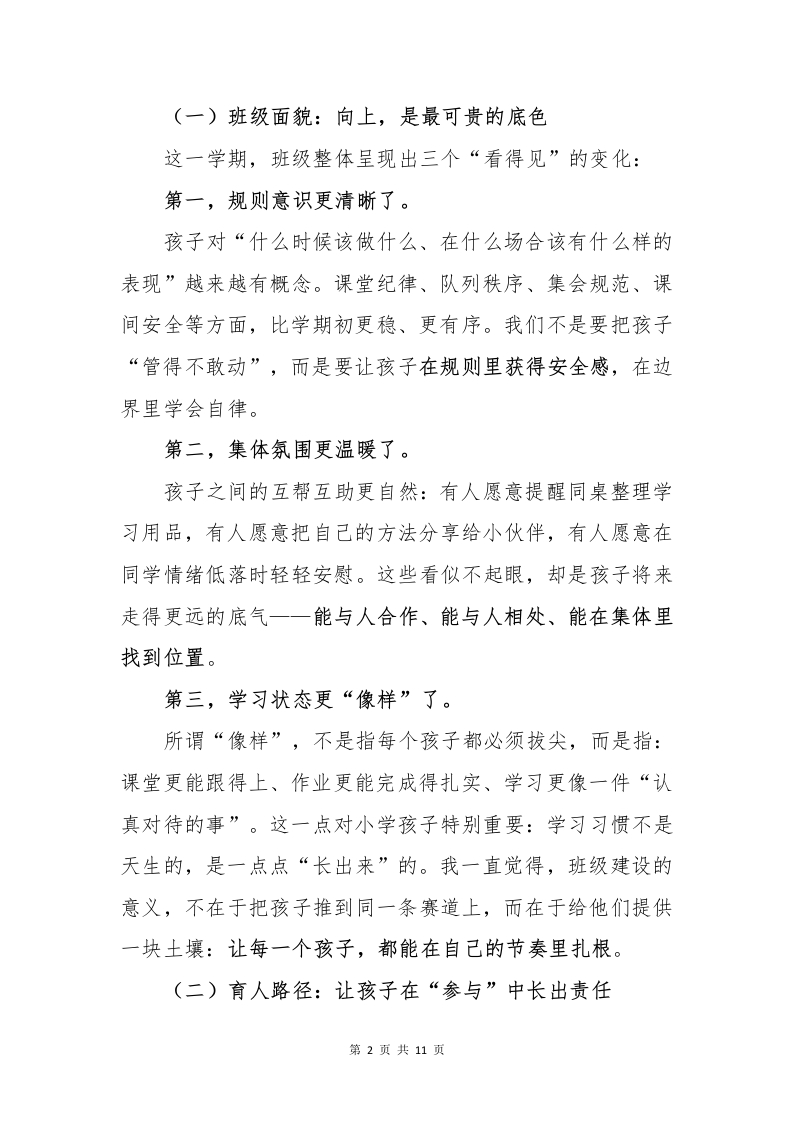 教育孩子,本质上是教育自己——期末家长会班主任讲话稿晨晨老师14天前发布关注私信0.28MB11页05213 以下为资料部分截图预览,下载后为超高清原文件。 第1页 / 共11页 第2页 / 共11页 第3页 / 共11页 试读已结束,还剩8页,您可下载完整版后进行离线阅读 加入VIP,享海量教务资料,无限制免费下载所有材料 教育孩子,本质上是教育自己——期末家长会班主任讲话稿此内容为付费资源,请付费后查看¥9.9¥15.9VIP会员免费代理(享70%分佣)免费立即购买您当前未登录!建议登陆后购买,可保存购买订单付费资源© 版权声明文章版权归作者所有,未经允许请勿转载。THE END综合资料 文本预览 教育孩子,本质上是教育自己一期末家长会班主任讲话稿各位家长朋友:大家好!感谢大家在工作繁忙、事务缠身的情况下,依然愿意为孩子的成长,腾出这一段宝贵的时间来到学校。能够与各位坐在一起交流,我很珍惜,也很感动。今天这场期末家长会,我想用一个我们都容易产生画面感的比喻,来开启今晚的交流:班级像一座小花园。孩子是花园里各不相同的小花有的开得早,有的开得慢;有的颜色明亮,有的香气淡雅;有的经得起风雨,有的需要多一点保护。而我们家长和老师,就像花园里的“守园人”:给阳光、给雨露、立边界、修枝叶、看方向。期末不是“算账”的时刻,而更像一次“盘点与修整”:盘点这一季的花开,修整接下来的养护方法。我们既要看见孩子的进步,也要看清下一步的重点;既要把握原则底线,也要保留温暖空间。今晚我想分四个部分,与各位做一次更系统、更温和也更有效的沟通。希望大家听完后,心里能更笃定:孩子正在长大,我们也在学着更好地陪伴。一、回望一季育花旅各位家长,先允许我用“回望”作为开场。因为期末最重要的,不是“哪一次考试考了多少分”,而是这一学期,孩子在学校和家庭之间,经历了哪些成长的真实发生。第1页共11页 查看更多 收起部分 喜欢就支持一下吧点赞13 分享QQ空间微博QQ好友海报分享复制链接收藏