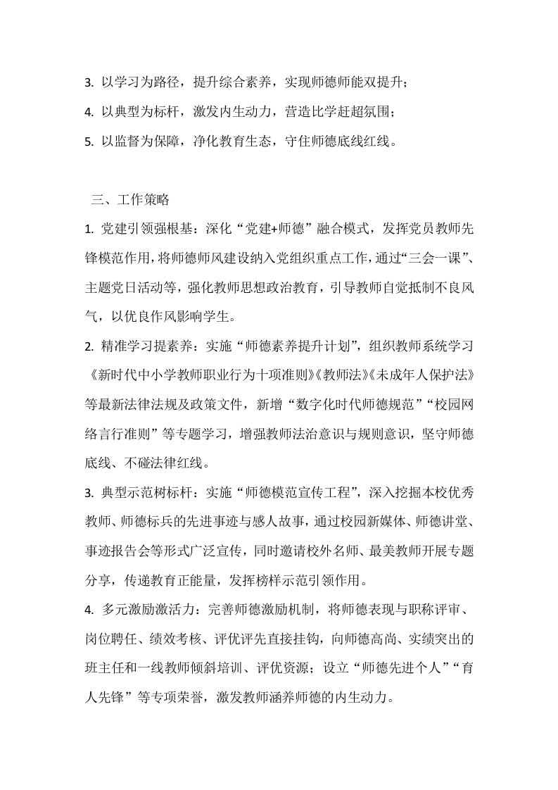 2026春季第二学期学校师德师风建设工作计划:师德润心,笃行致远晨晨老师22小时前发布关注私信14.28KB5页04815 以下为资料部分截图预览,下载后为超高清原文件。 第1页 / 共5页 第2页 / 共5页 试读已结束,还剩3页,您可下载完整版后进行离线阅读 加入VIP,享海量教务资料,无限制免费下载所有材料 2026春季第二学期学校师德师风建设工作计划:师德润心,笃行致远此内容为付费资源,请付费后查看¥9.9¥15.9VIP会员免费代理(享70%分佣)免费立即购买您当前未登录!建议登陆后购买,可保存购买订单付费资源© 版权声明文章版权归作者所有,未经允许请勿转载。THE END计划总结 文本预览 2026春季第二学期学校师德师风建设工作计划:师德润心,笃行致远为深入落实《关于全面深化新时代教师队伍建设改革的意见》,健全师德师风建设长效机制,持续巩固我校师德建设成果,推动教师队伍思想政治素质与职业道德水平再提升,根据上级教育部门最新工作要求,结合学校发展实际,制定本学期师德师风建设工作计划。一、指导思想以习近平新时代中国特色社会主义思想为指导,深入贯彻党的二十大及后续相关会议精神,紧扣“为党育人、为国育才”初心使命,以立德树人为根本任务,以提升教师思想政治素质、职业道德素养为核心,以健全制度、强化培训、树立典型、严格监督为抓手,引导广大教师坚定理想信念、厚植爱国情怀、涵养高尚师德,为学校教育高质量发展提供坚强的师资保障。二、工作思路本学期师德师风建设秉持“党建引领、制度护航、学习赋能、典型示范、监督提效”的总体方针,聚焦“守底线、提素养、树形象”三大目标:1.以党建为引领,筑牢思想根基,确保师德建设正确方向:2.以制度为支撑,完善长效机制,规范教师从教行为: 查看更多 收起部分 喜欢就支持一下吧点赞15 分享QQ空间微博QQ好友海报分享复制链接收藏