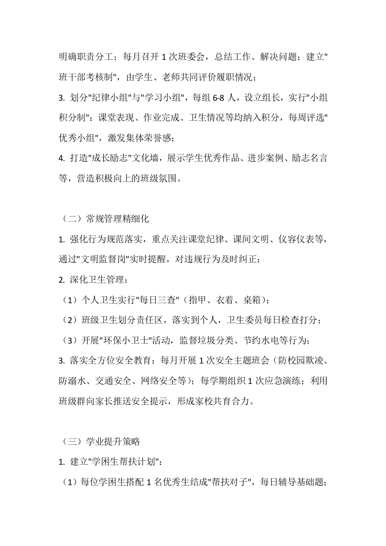 2025-2026学年度第二学期五年级班主任工作计划晨晨老师19小时前发布关注私信13.81KB5页0399 以下为资料部分截图预览,下载后为超高清原文件。 第1页 / 共5页 第2页 / 共5页 试读已结束,还剩3页,您可下载完整版后进行离线阅读 加入VIP,享海量教务资料,无限制免费下载所有材料 2025-2026学年度第二学期五年级班主任工作计划此内容为付费资源,请付费后查看¥9.9¥15.9VIP会员免费代理(享70%分佣)免费立即购买您当前未登录!建议登陆后购买,可保存购买订单付费资源© 版权声明文章版权归作者所有,未经允许请勿转载。THE END计划总结 文本预览 2025-2026学年度第二学期五年级班主任工作计划一、指导思想以学校2026年春季德育工作目标为引领,立足五年级学生青春期前期特点,聚焦思想教育、班风建设、常规管理、学业提升四大核心,以培养学生自主管理能力为重点,强化集体观念与纪律意识,营造”勤学善思、团结奋进、文明自律"的班级氛围,为学生升入高年级奠定坚实基础。二、班级基本情况本班共有学生x人,其中女生x人,男生x人。班级整体纪律较好,但部分学生学习积极性不足,缺乏主动进取意识:少数学生存在作业拖沓、偏科严重等问题:随着年龄增长,学生自我意识增强,同伴矛盾、叛逆情绪逐渐显现:班级集体荣誉感有待进一步提升。本学期将针对性解决以上问题,促进全班学生全面发展。三、具体措施(一)思想教育与班风建设1.每月开展1次主题班会,内容涵盖理想信念、诚信友善、青春期心理、感恩责任等,采用辩论、视频学习、案例分析等形式增强教育效果:2.重新选举班委会,通过民主投票产生班长、副班长及各科委员, 查看更多 收起部分 喜欢就支持一下吧点赞9 分享QQ空间微博QQ好友海报分享复制链接收藏