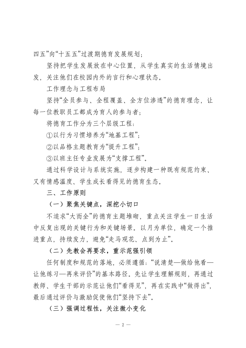 2026年春季学校德育工作计划:以习立德,以行润心晨晨老师26天前发布关注私信39.50KB12页0645 以下为资料部分截图预览,下载后为超高清原文件。 第1页 / 共12页 第2页 / 共12页 试读已结束,还剩10页,您可下载完整版后进行离线阅读 加入VIP,享海量教务资料,无限制免费下载所有材料 2026年春季学校德育工作计划:以习立德,以行润心此内容为付费资源,请付费后查看¥9.9¥15.9VIP会员免费代理(享70%分佣)免费立即购买您当前未登录!建议登陆后购买,可保存购买订单付费资源© 版权声明文章版权归作者所有,未经允许请勿转载。THE END德育工作 文本预览 2026年春季学校德育工作计划:以习立德,以行润心一、总体思路:以习化人,以行育心德育是学校工作的灵魂所在。良好的习惯,是品格最直接的外在呈现;稳定的品格,又是习惯能够长期坚持的内在支点。本学期,我校德育工作将围绕“以习化德、以行养心”的主线展开,从学生每天可见、可做的小事切入,把抽象的德育目标转化为具体的行为要求,让学生在一遍遍的实践中看懂规则、认同价值,在一点点的改变中完成从“老师要求我这样做”到“我愿意这样做”的内在转化。本学期重点抓好以下五个版块:日常行为规范养成;品格主题教育活动;班级文化与自主管理建设;心理健康教育与支持;家校协同育人推进。努力实现:德育工作有清晰的规则、有连续的过程、有温度的体验、有看得见的成效。二、指导思想政策依据与价值导向以党的教育方针为根本遵循,落实立德树人根本任务:以《中小学德育工作指南》等文件为基本依据,结合学校“十1 查看更多 收起部分 喜欢就支持一下吧点赞5 分享QQ空间微博QQ好友海报分享复制链接收藏