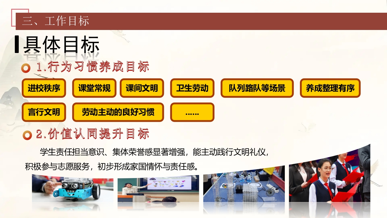 2026年春季学校德育工作计划驰聘春程践初心德育赋能强少年汇报人X老师时间2026.2保迪sose's