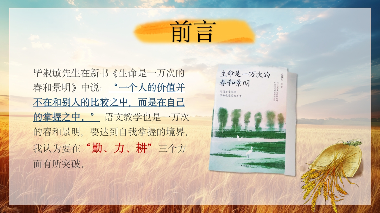 2025-2026年第二学期小学语文教师教学经验分享大道至简住勤力耕汇报人:X老师时间2026年3月