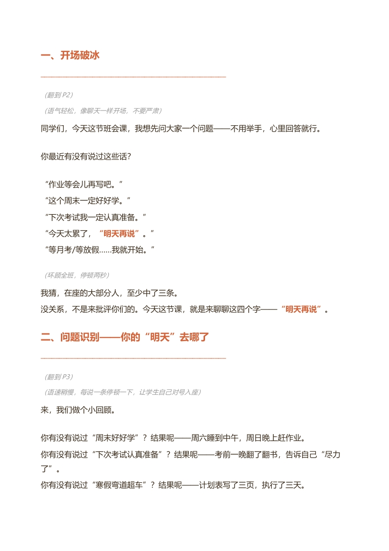拒绝明天再说_逐字稿晨晨老师6天前发布关注私信42.33KB9页03610 以下为资料部分截图预览,下载后为超高清原文件。 第1页 / 共9页 第2页 / 共9页 试读已结束,还剩7页,您可下载完整版后进行离线阅读 加入VIP,享海量教务资料,无限制免费下载所有材料 拒绝明天再说_逐字稿此内容为付费资源,请付费后查看¥9.9¥15.9VIP会员免费代理(享70%分佣)免费立即购买您当前未登录!建议登陆后购买,可保存购买订单付费资源© 版权声明文章版权归作者所有,未经允许请勿转载。THE END综合资料 文本预览 拒绝“明天再说”学习动员主题班会2026年·学习动员主题班会逐字稿(初高中通用直击拖延可直接念) 查看更多 收起部分 喜欢就支持一下吧点赞10 分享QQ空间微博QQ好友海报分享复制链接收藏