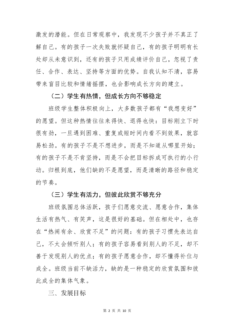 在群星之间,找到自己的位置——“星野”少年带班育人方略晨晨老师14天前发布关注私信25.53KB10页03710 以下为资料部分截图预览,下载后为超高清原文件。 第1页 / 共10页 第2页 / 共10页 试读已结束,还剩8页,您可下载完整版后进行离线阅读 加入VIP,享海量教务资料,无限制免费下载所有材料 在群星之间,找到自己的位置——“星野”少年带班育人方略此内容为付费资源,请付费后查看¥9.9¥15.9VIP会员免费代理(享70%分佣)免费立即购买您当前未登录!建议登陆后购买,可保存购买订单付费资源© 版权声明文章版权归作者所有,未经允许请勿转载。THE END班主任库 文本预览 在群星之间,找到自己的位置—“星野”少年带班育人方略一、育人理念育人理念:看见差异,校准方向,彼此映照小学阶段,孩子正在慢慢认识自己、认识同伴、认识集体。这个时期的教育,不能只盯着分数和表现,更要帮助他们在班级生活中学会看见自己、理解别人、找准方向。每个孩子都像一颗星,有不同的亮度,也有不同的轨迹。班主任要做的,不是把所有孩子塑造成同一个样子,而是帮助他们在差异中找到自己的位置,在集体中获得成长的力量。我把班级命名为“星野”。“星”代表每一个独特的孩子,“野”代表广阔、生长和可能。基于这样的理解,我将“看见差异,校准方向,彼此映照”确立为班级育人理念:看见差异,是尊重每个孩子的不同起点和成长节奏;校准方向,是帮助孩子把热情变成行动,把愿望变成路径;彼此映照,是让班级成为一个能互相欣赏、互相支持、共同向上的成长场。我的带班目标,不是让孩子彼此比较,而是让他们在各自的轨道上稳稳前行,也能在集体中彼此成全。二、班情分析(一)学生有想法,但自我认知不够清晰班里的孩子普遍思维活、反应快、表达欲强,课堂上愿意发言,活动中愿意参与,说明他们有生长的热情,也有被第1页共10页 查看更多 收起部分 喜欢就支持一下吧点赞10 分享QQ空间微博QQ好友海报分享复制链接收藏