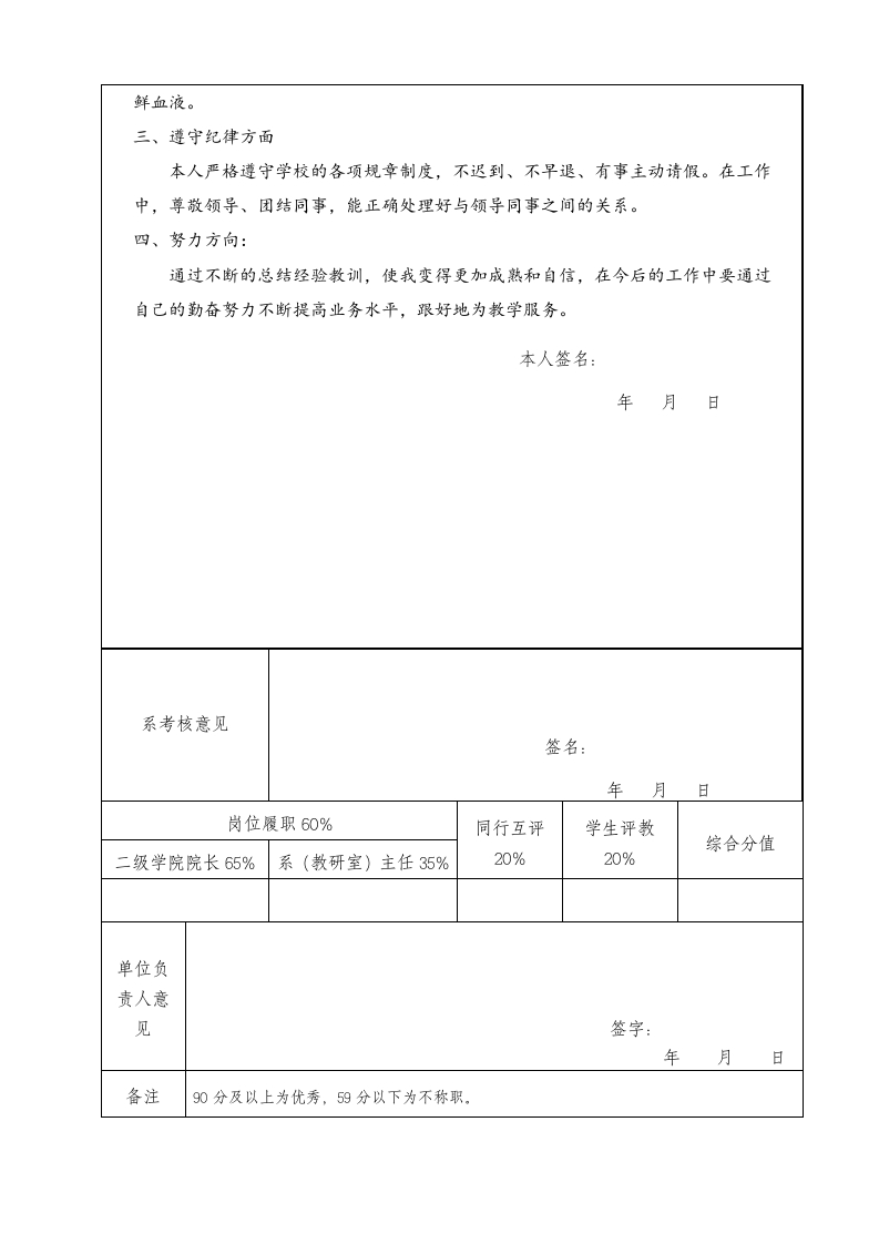 教师年度考核表xiaozhi33164个月前更新关注私信38KB2页03212 以下为资料部分截图预览,下载后为超高清原文件。 第1页 / 共2页 第2页 / 共2页 已完成全部阅读,共2页 加入VIP,享海量教务资料,无限制免费下载所有材料 © 版权声明文章版权归作者所有,未经允许请勿转载。THE END校本研修 喜欢就支持一下吧点赞12 分享QQ空间微博QQ好友海报分享复制链接收藏