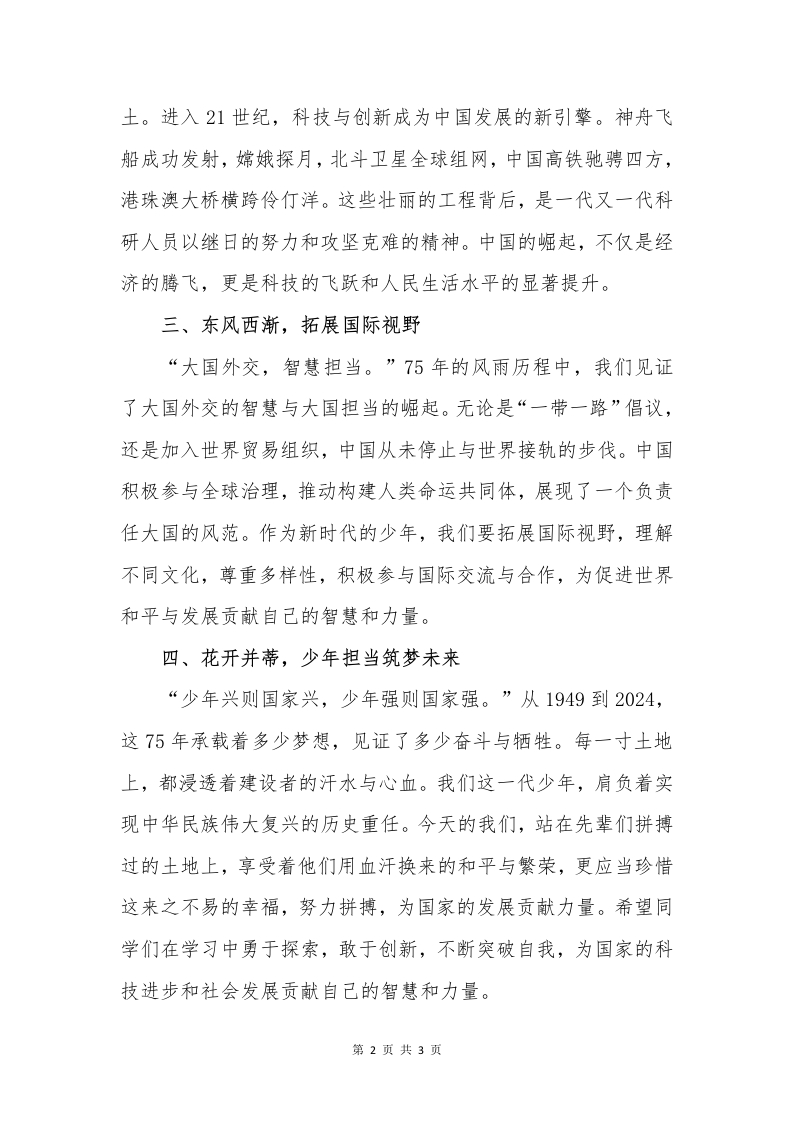 庆祝新中国成立75周年校长讲话稿(1)xiaozhi33164个月前更新关注私信0.23MB3页0526 以下为资料部分截图预览,下载后为超高清原文件。 第1页 / 共3页 第2页 / 共3页 试读已结束,还剩1页,您可下载完整版后进行离线阅读 加入VIP,享海量教务资料,无限制免费下载所有材料 © 版权声明文章版权归作者所有,未经允许请勿转载。THE END工作发言校长讲话 喜欢就支持一下吧点赞6 分享QQ空间微博QQ好友海报分享复制链接收藏