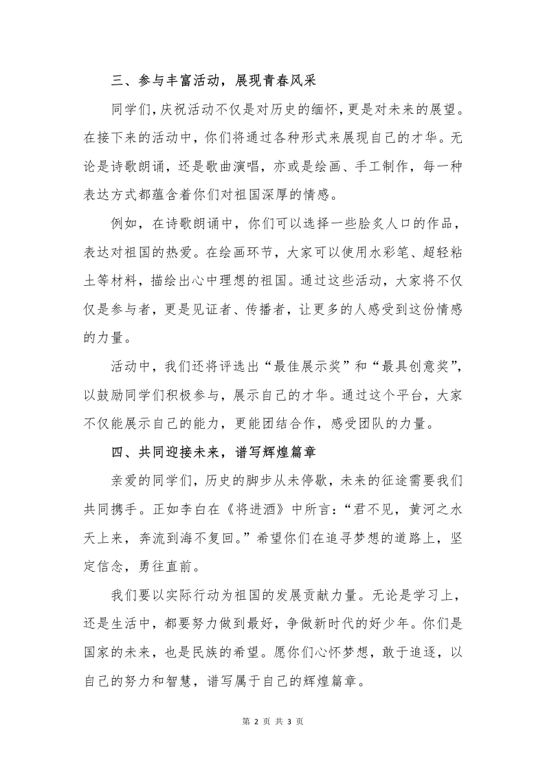 2024年国庆节活动校长讲话稿(1)xiaozhi33164个月前更新关注私信0.22MB3页02212 以下为资料部分截图预览,下载后为超高清原文件。 第1页 / 共3页 第2页 / 共3页 试读已结束,还剩1页,您可下载完整版后进行离线阅读 加入VIP,享海量教务资料,无限制免费下载所有材料 © 版权声明文章版权归作者所有,未经允许请勿转载。THE END校长讲话计划汇报 喜欢就支持一下吧点赞12 分享QQ空间微博QQ好友海报分享复制链接收藏
